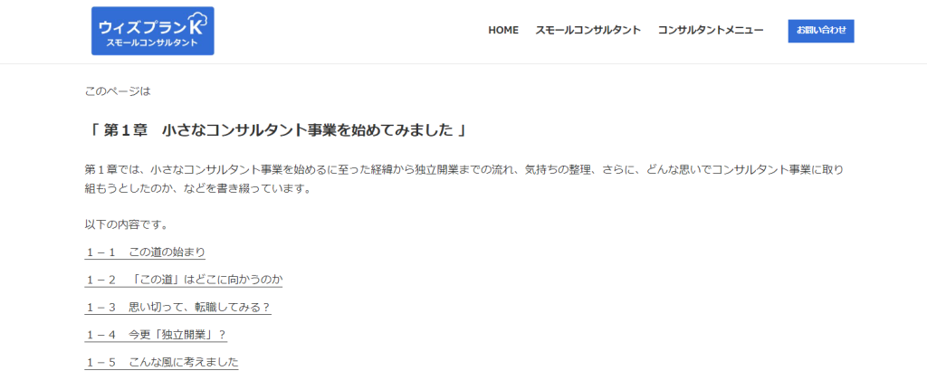 「第1章 小さなコンサルタント事業を始めてみました」ページ公開